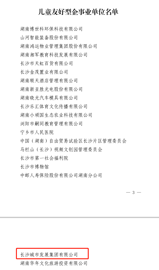 长沙城市发展集团有限公司于2019年9月25日挂牌成立,由长沙市政府授权市国资委全额出资,现有二级经营主体31个,职工3026人,其中35岁以下青年1502人,18岁以下职工子女2058人。城发集团一直秉承“坚持儿童优先和儿童利益最大化原则”的宗旨,对内制定和开展了一系列关怀职工子女的亲情活动;对外热心各类公益助学、扶贫济困活动,体现了企业对儿童事业应有的担当,积极参与推动长沙市儿童友好型企业建设。城发集团党委高度重视关爱、教育、服务青少年工作,注重宣传引导,营造舆论氛围,组织各党支部、各分工会做好关心下一代工作宣传教育,引导广大职工充分认识青年及儿童工作的重要性,培养中国特色社会主义事业建设者和接班人,推动“党建带关建”工作形成合力。