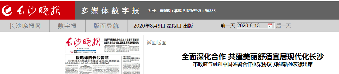 根据合作协议,长沙市人民政府与融创中国将在文化旅游、高端商务、城市更新、产城融合、健康养老等多方面加深交流合作。