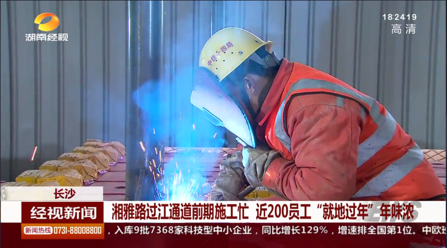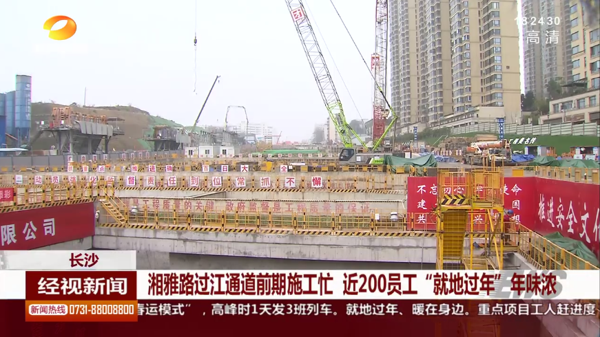 湖南经视新闻:长沙:湘雅路过江通道前期施工忙 近200员工“就地过年”年味浓