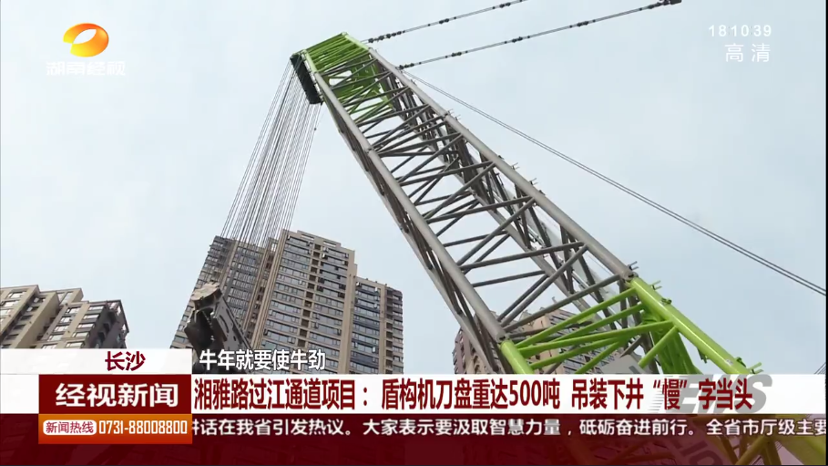 湖南经市新闻:长沙 牛年就要使牛劲 湘雅路过江通道项目:盾构机刀盘重达500吨 吊装下井“慢”字当头